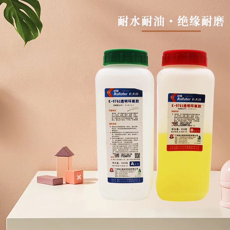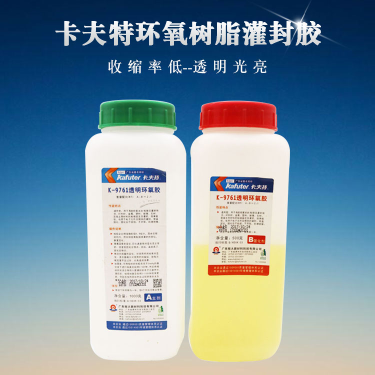 K-9761用于有透明要求的电子元器件和模块的灌封。常温可固化,固化后收缩率低,固化物透明光亮,不开裂,防潮,绝缘,耐湿热和大气老化。也可根据需要调配颜色。