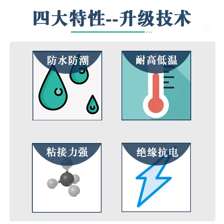 。性能稳定,具有良好电绝缘性能,耐老化、防潮,有良好的粘接性能。适用于多种金属之间、金属和非金属材料之间的粘合、密封。