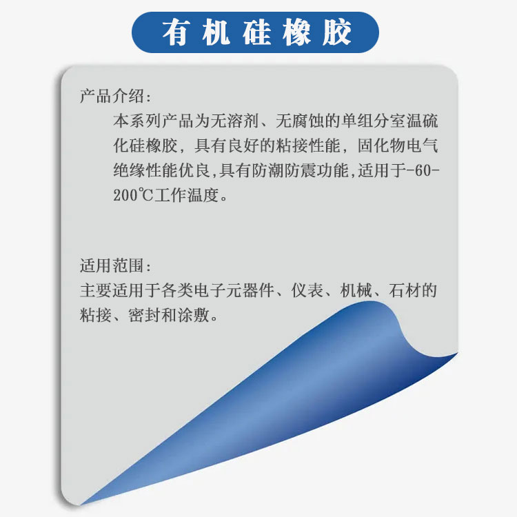 本品为单组份室温固化有机硅密封胶,露置于空气中时与空气中微量水分反应,司化后形成柔韧的硅橡胶弹性体。固化后具有优秀的耐高低温性能,工作温度-50℃~200