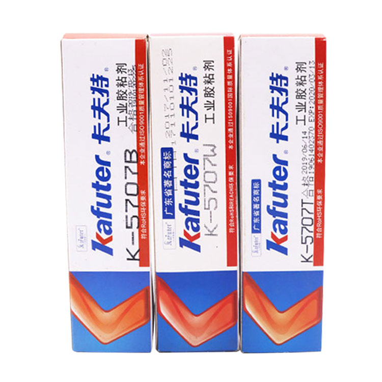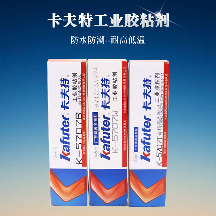 K-5707T|5707B|5707W工程塑料密封胶系列密封硅胶为快干型无溶剂的单组分室温固化硅橡胶,适用于难粘材料的粘接密封,固化物韧性好,粘接强度高,固化后具有良好的抗冷热交变性能,耐温性好(-60~+200℃),电气绝缘性优,具有防潮防震功能。卡夫特Kafuter官方授权经销商-东莞德润密封材料有限公司