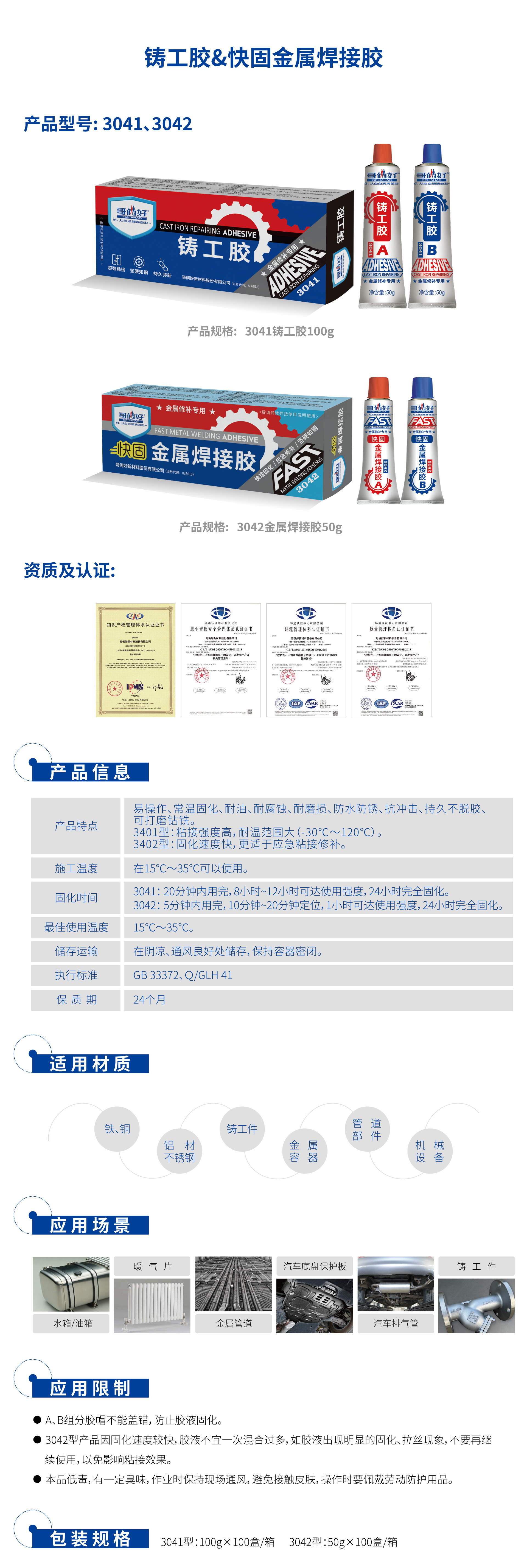 哥俩好AB铸工胶耐温水3041玻璃热水器胶饰品胶油箱水箱修补剂3042产品系列定位