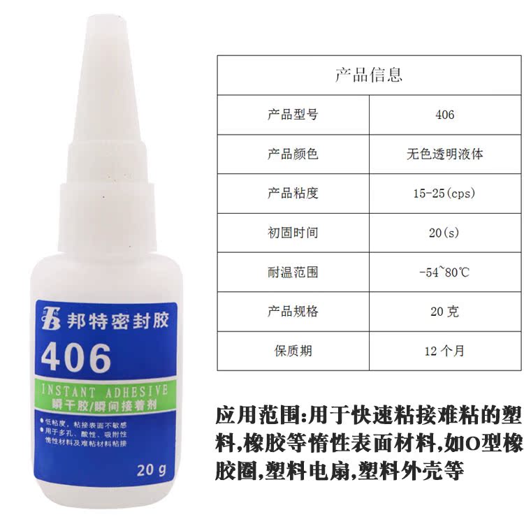 邦特406瞬干胶强力胶塑料金属玻璃粘鞋透明快干固化透明通用型胶