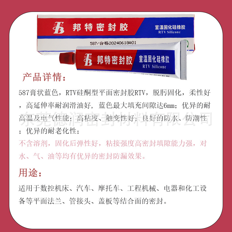 邦特587RTV硅酮密封胶平面法兰管接头内燃机汽车部件平面密封胶