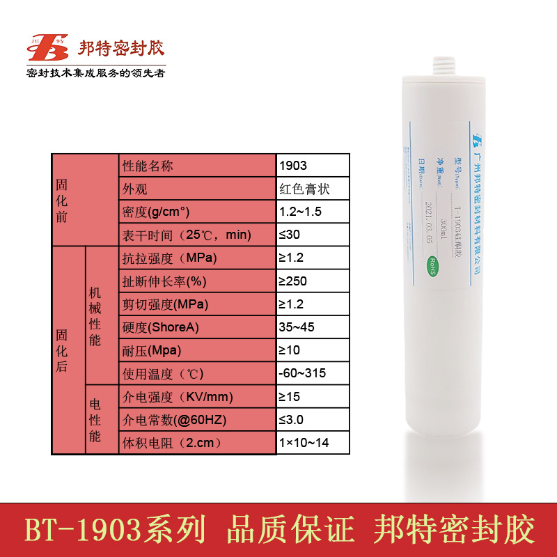 邦特T-1903耐高温密封胶熨斗绝缘防水红色可耐315度电子硅胶300ml