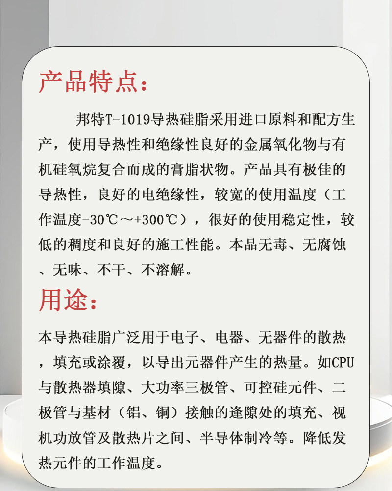 邦特T-1019 导热硅脂 LED灯 大功率模块散热膏 导热系数2.5