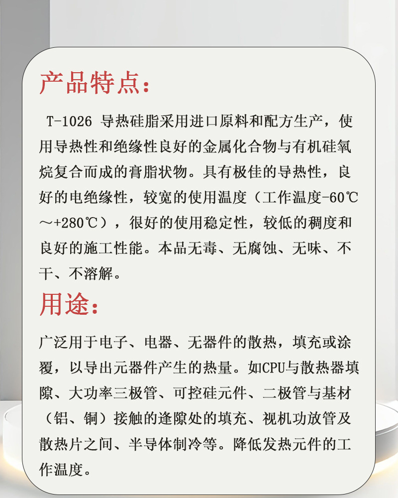 邦特T-1026 台式笔记本电脑CPU导热硅脂显卡导热膏散热硅胶高导热