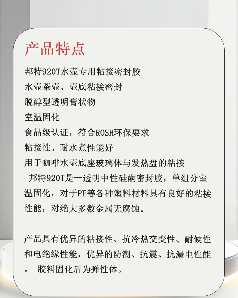 邦特920T水壶底座专用粘接密封胶 920T密封胶 电子电器胶