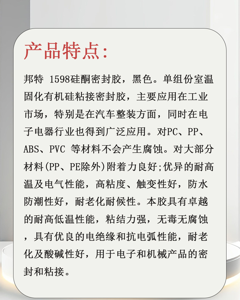 邦特1598平面密封胶耐油耐高温汽车维修专用胶车灯密封胶电子硅胶