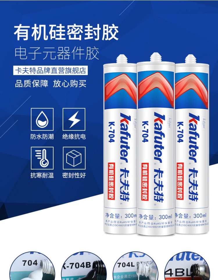 卡夫特704系列有机硅密封胶防水防潮耐高温白电子胶硅橡胶300ml