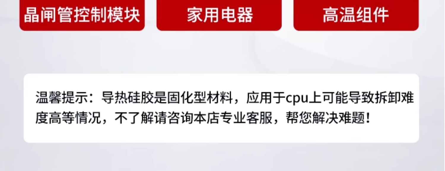 卡夫特K-5202导热硅胶导热胶CPU密封胶LED球灯固化散热胶灰色 80gK-5202导热硅胶(导热系数0.8)有机硅导热胶是一种单组分室温固化中性胶,既有粘接作用,又有良好的导热(散热)性。该胶经过补强,胶固化后长期使用不会脱落,有较高的粘接强度,不会产生接触缝隙降低散热效果;该胶具有良好的耐高低温性能,使用温度范围为-50℃~200℃;卡夫特Kafuter官方授权经销商-东莞德润密封材料有限公司www.gzderun.com,销售服务热线:15817734885,李经理