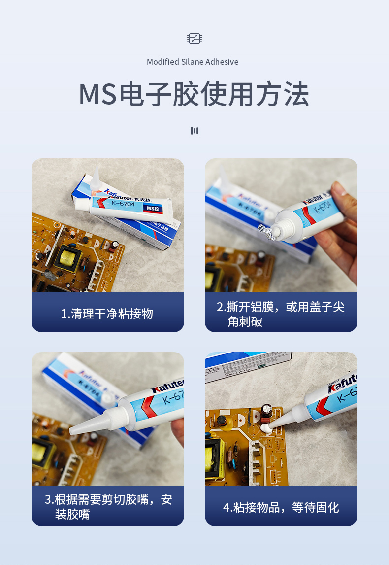 卡夫特K5409白胶/6704白胶/6668黄胶电子元件专用MS改性硅烷胶水固定绝缘阻燃胶防水密封胶强力粘接剂