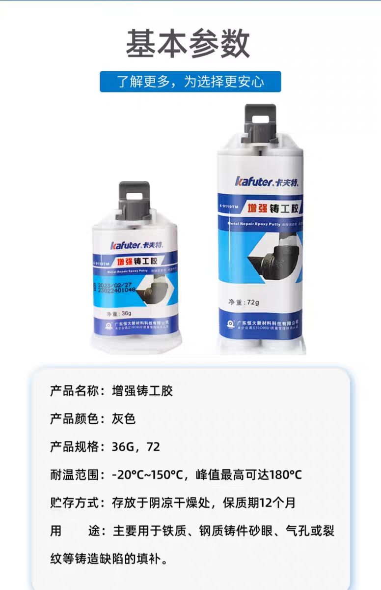 卡夫特K-9119TM强力铸工胶耐高温AB胶结构胶金属砂眼裂纹缺陷补漏