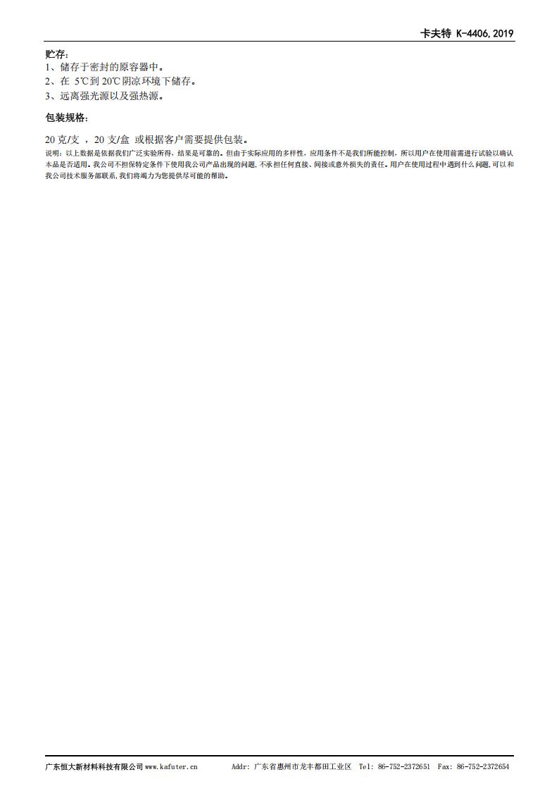 K-4406是一种低粘度快速瞬间强力胶,主要用于各种塑料、橡胶及弹性体的快速粘结固定,与恒大底涂剂配合可粘接表面不敏感的难粘材料,如PP、PE、硅橡胶等。卡夫特Kafuter官方授权经销商-东莞德润密封材料有限公司
