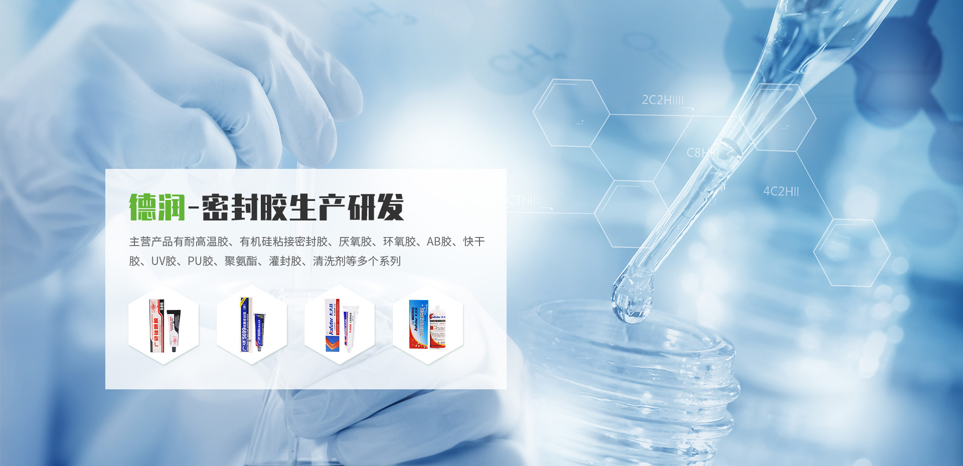 Years of experience in the sealing material industry东莞德润密封材料有限公司是一家新型密封胶生产、研发技术公司,主打产品有耐高温胶、有机硅粘接密封胶、厌氧胶、环氧胶、AB胶、快干胶、UV胶、PU胶、聚氨酯、灌封胶、清洗剂等多个系列,为各行各业提供胶粘方面的产品和解决方案。