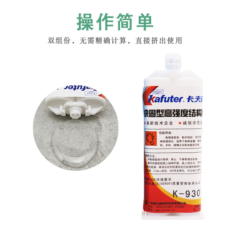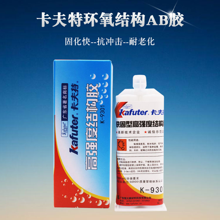 卡夫特K-9301AB环氧,AB胶为常温下可快速固化的双组分高强度环氧胶,其在常温情况下固化速度快,同时在-20C的条件下亦可完全固化。卡夫特Kafuter官方授权经销商-东莞德润密封材料有限公司www.gzderun.com,销售服务热线:15817734885,李经理