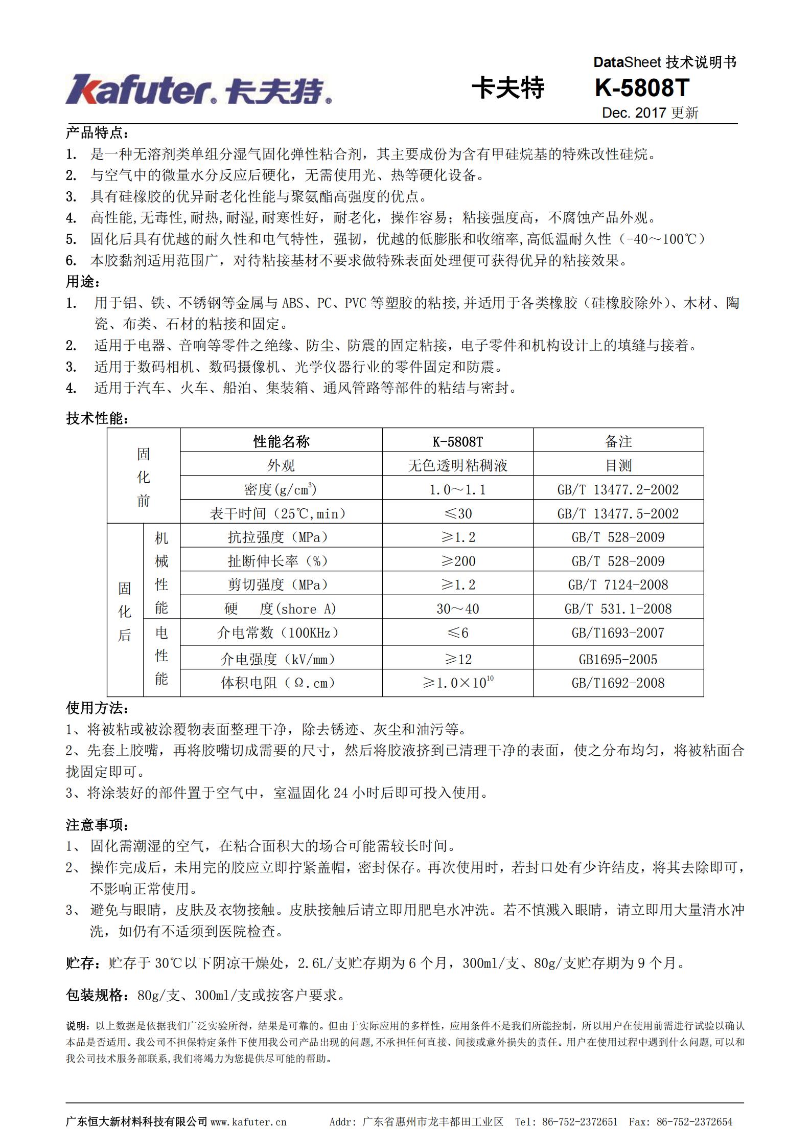 K-5808T/W/B系列改性硅烷密封胶