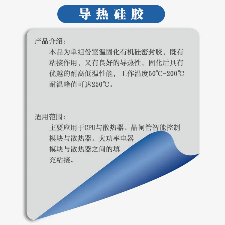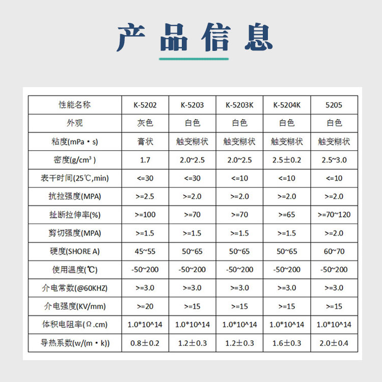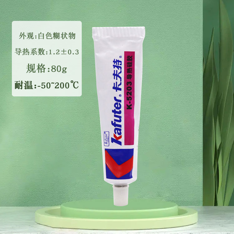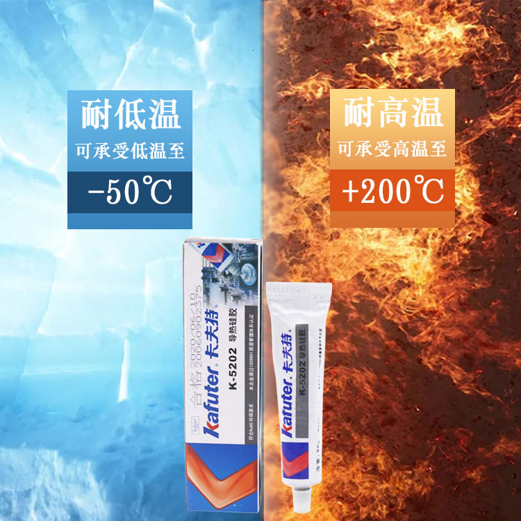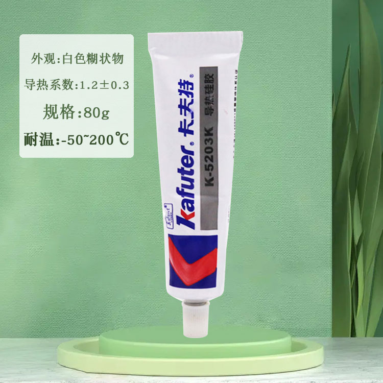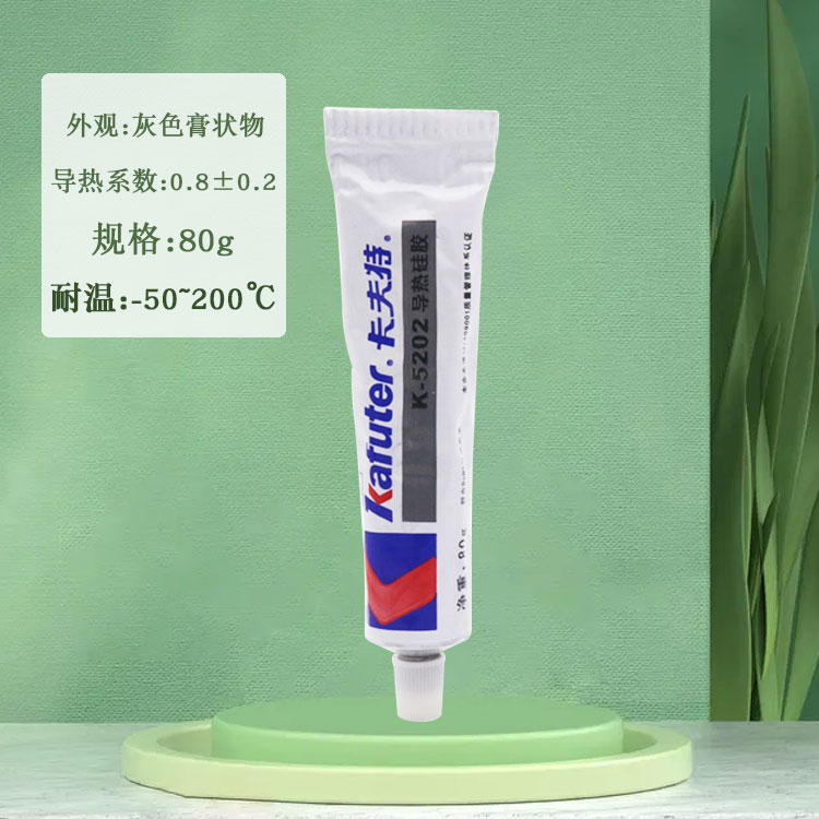 K-5202导热硅胶(导热系数0.8)有机硅导热胶是一种单组分室温固化中性胶,既有粘接作用,又有良好的导热(散热)性。该胶经过补强,胶固化后长期使用不会脱落,有较高的粘接强度,不会产生接触缝隙降低散热效果;该胶具有良好的耐高低温性能,使用温度范围为-50