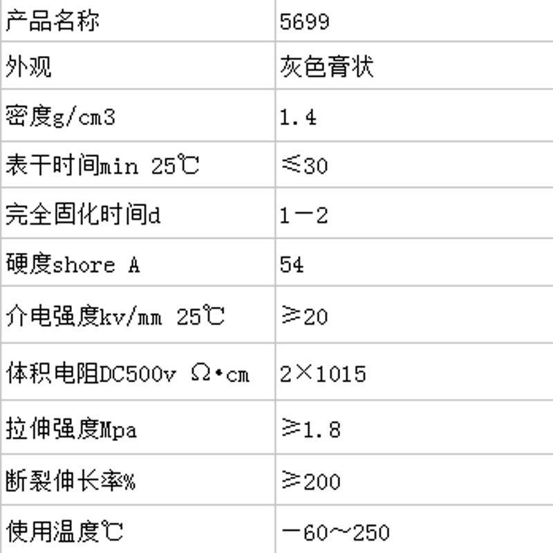 G5699为单组分室温固化有机硅粘接密封胶,主要应用在工业市场,特别是在汽车整装方面,同时在电子电器行业也得到广泛应用。对PC、PP、ABS、PVC等材料不会产生腐蚀。对大部分材料(PP、PE除外)附着力良好。