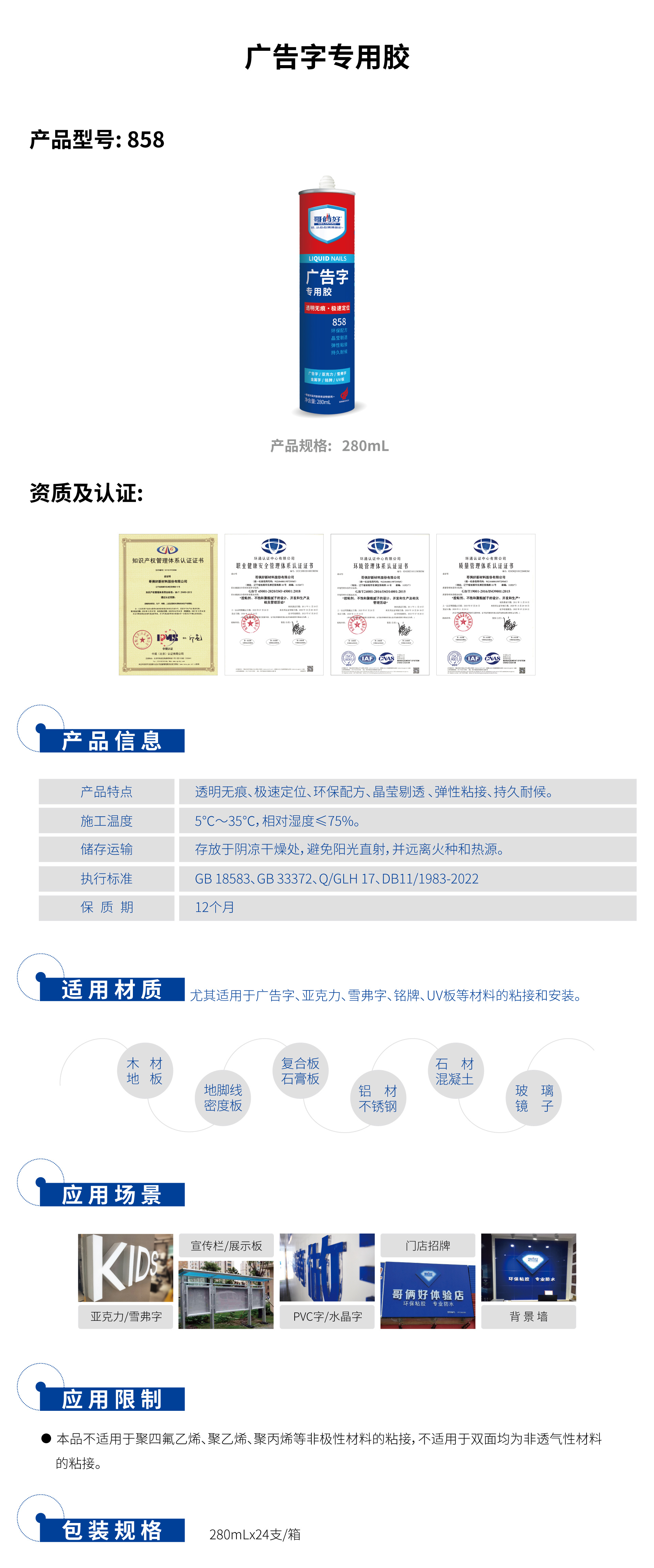 哥俩好858广告字专用胶透明无痕速定位环保配方晶莹剔透持久耐候