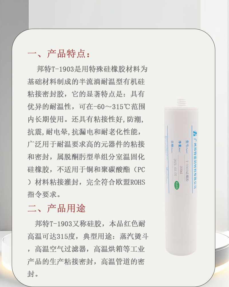 邦特T-1903耐高温密封胶熨斗绝缘防水红色可耐315度电子硅胶300ml