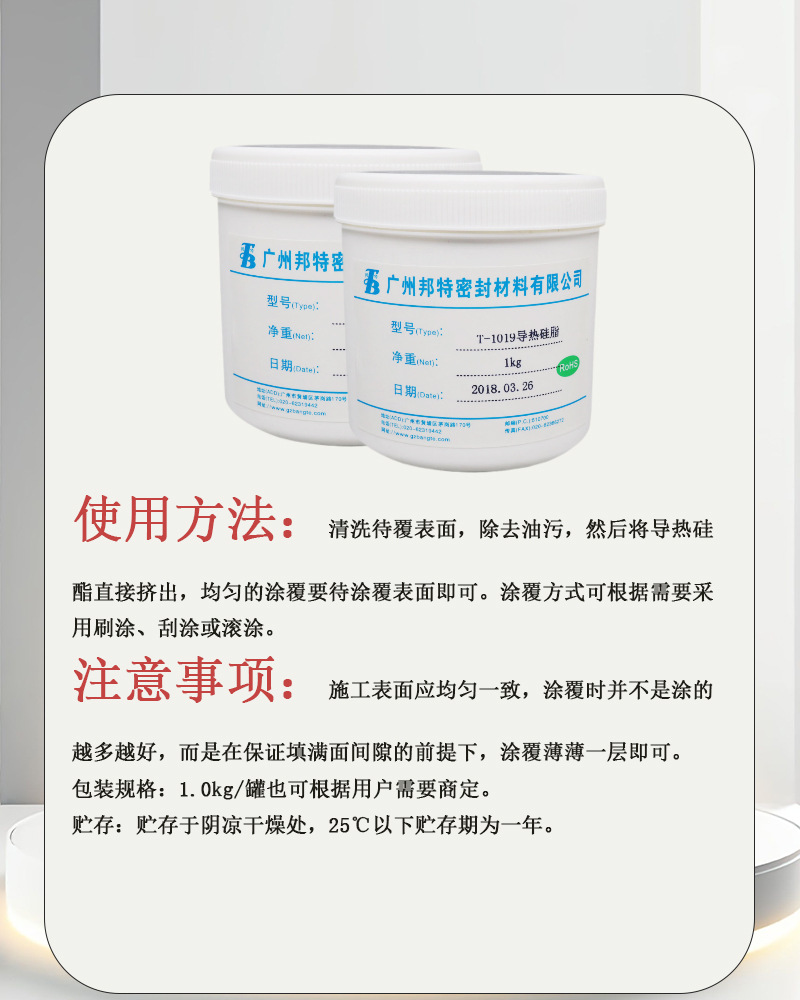 邦特T-1019 导热硅脂 LED灯 大功率模块散热膏 导热系数2.5