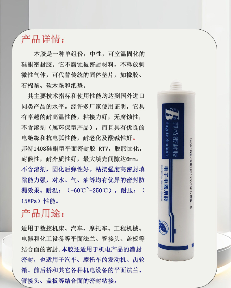 邦特1408密封胶 硅酮型密封胶 耐油防水耐压 抗震动白色膏状300ml