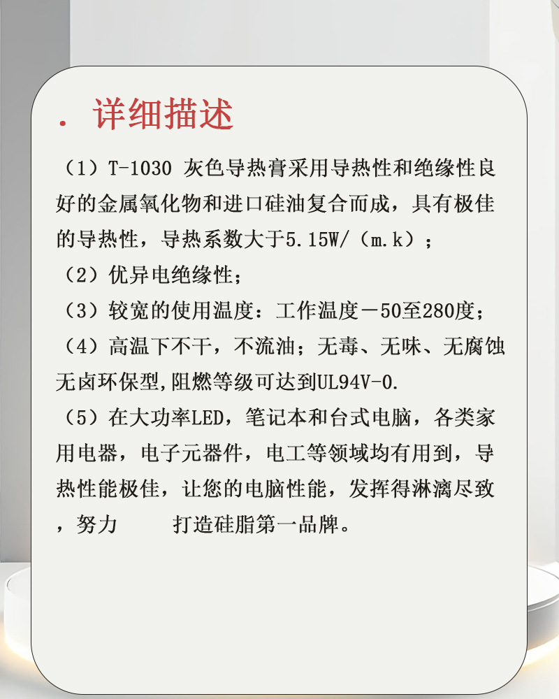 邦特T-1030导热硅脂 大功率LED散热膏 CPU导热膏 灰色 1kg