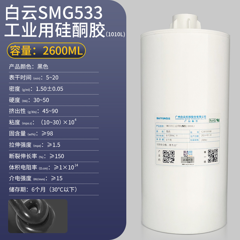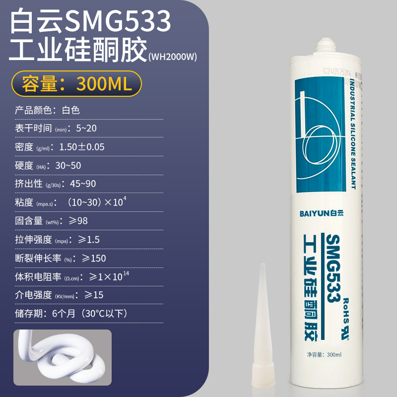 白云SMG533工业硅酮密封胶灯具胶玻璃铝材工程塑料粘接密封2.6l