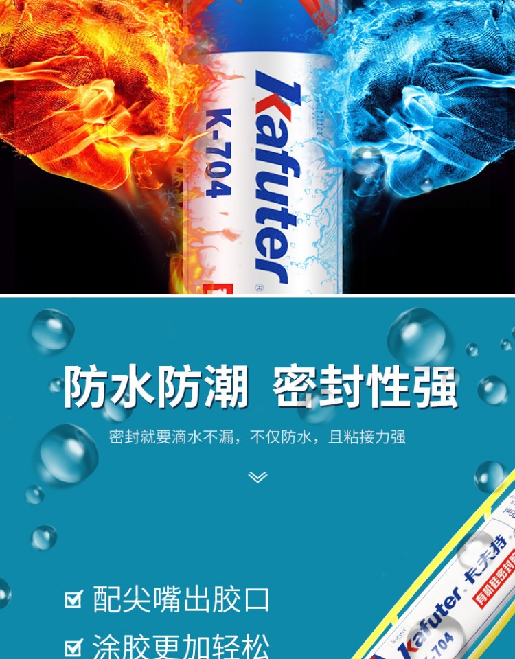 卡夫特704系列有机硅密封胶防水防潮耐高温白电子胶硅橡胶300ml
