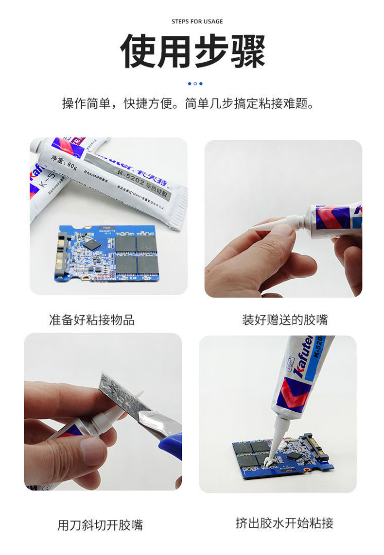 [下一个:卡夫特K-5203导热硅胶5203k耐高温固化绝缘防水CPU散热粘接硅酮导热胶80g]