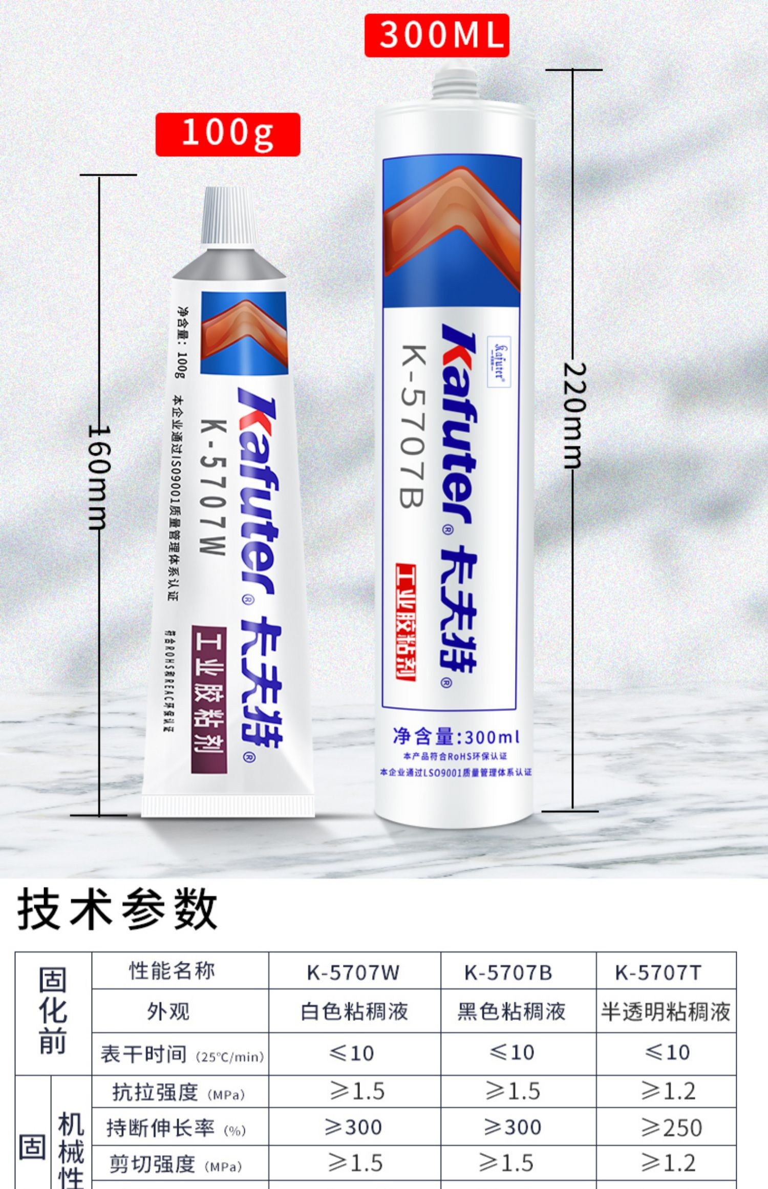 卡夫特K-5707W RTV硅橡胶强力耐高温绝缘 工程塑料专用防水密封胶