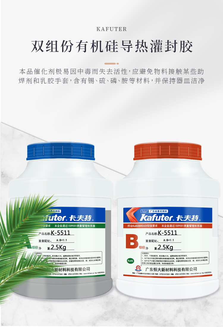 卡夫特K-5511有机硅双组份导热灌封胶电源球泡灯电子元件灌封5kg