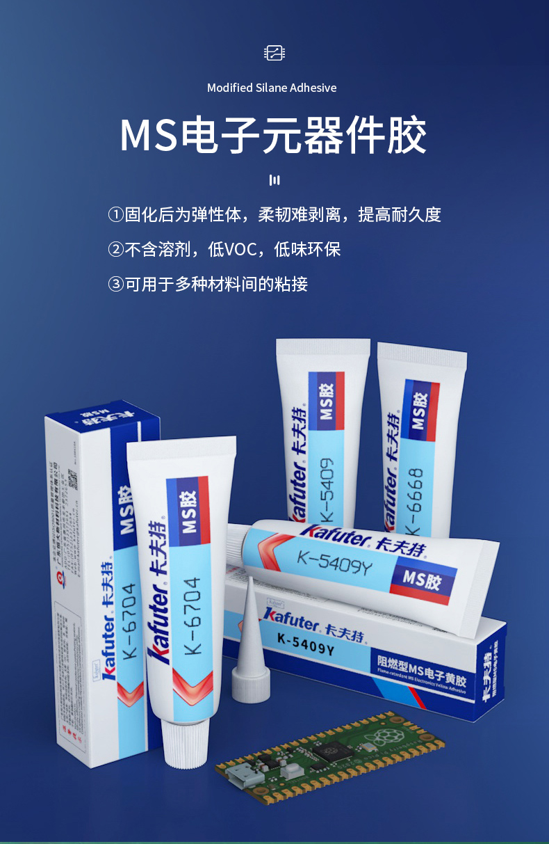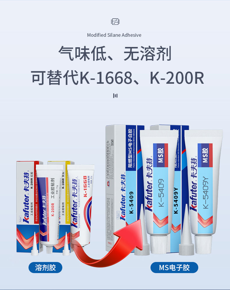 卡夫特K5409白胶/6704白胶/6668黄胶电子元件专用MS改性硅烷胶水固定绝缘阻燃胶防水密封胶强力粘接剂