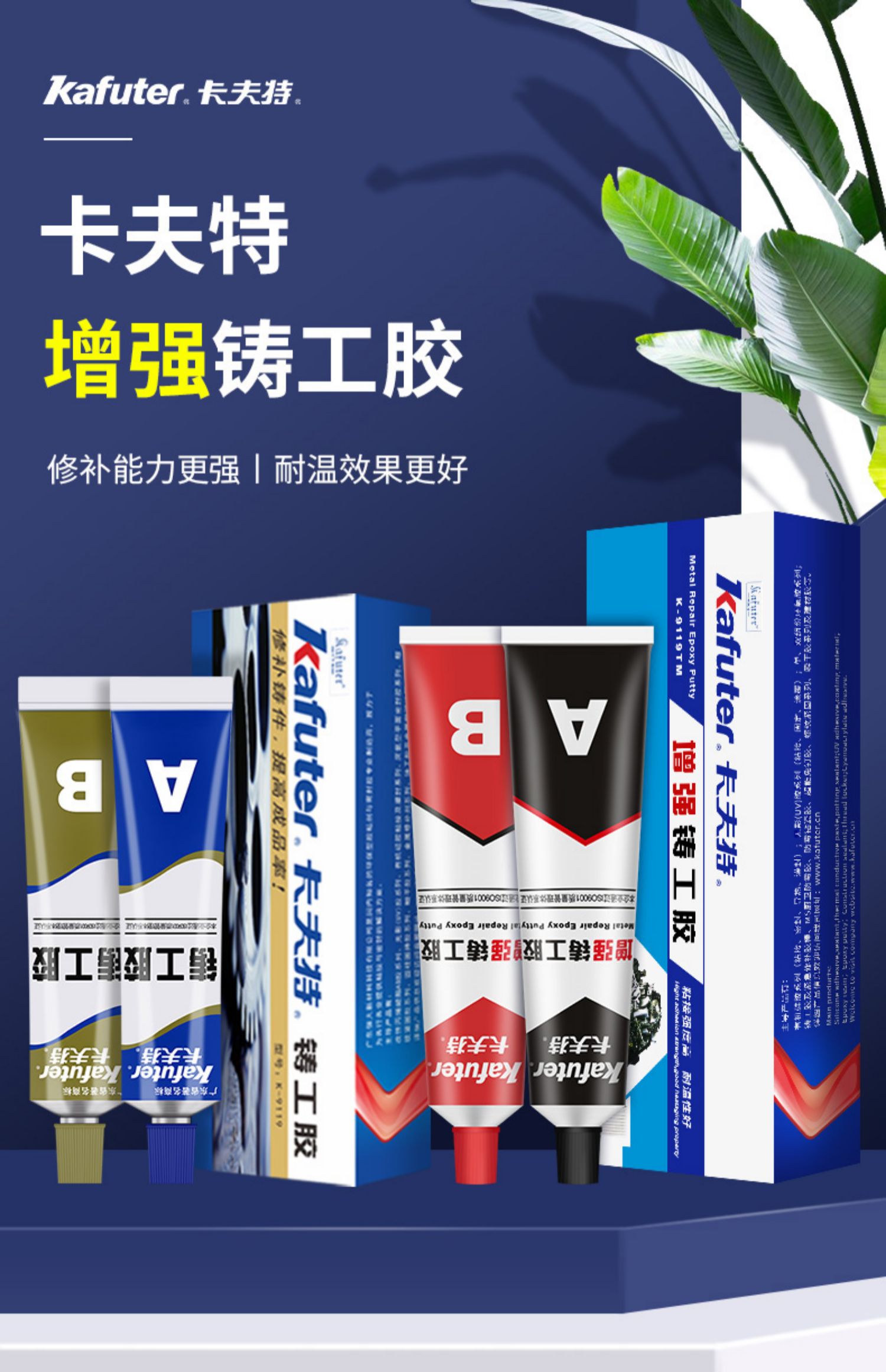 卡夫特K9119TM增强铸工胶强力ab胶水金属修补剂耐高温粘铁铝补漏100g