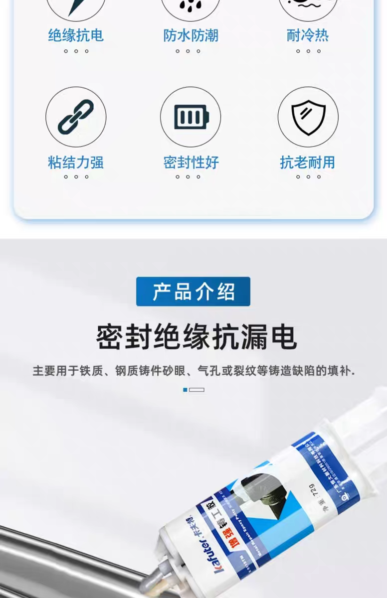 卡夫特K-9119TM强力铸工胶耐高温AB胶结构胶金属砂眼裂纹缺陷补漏