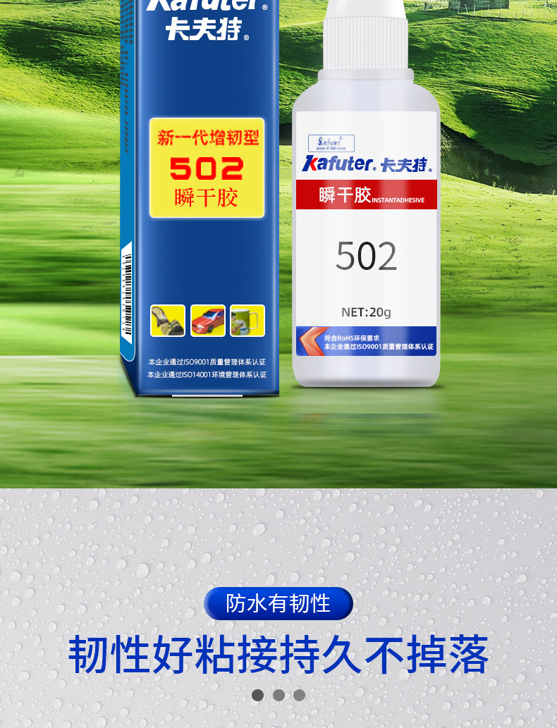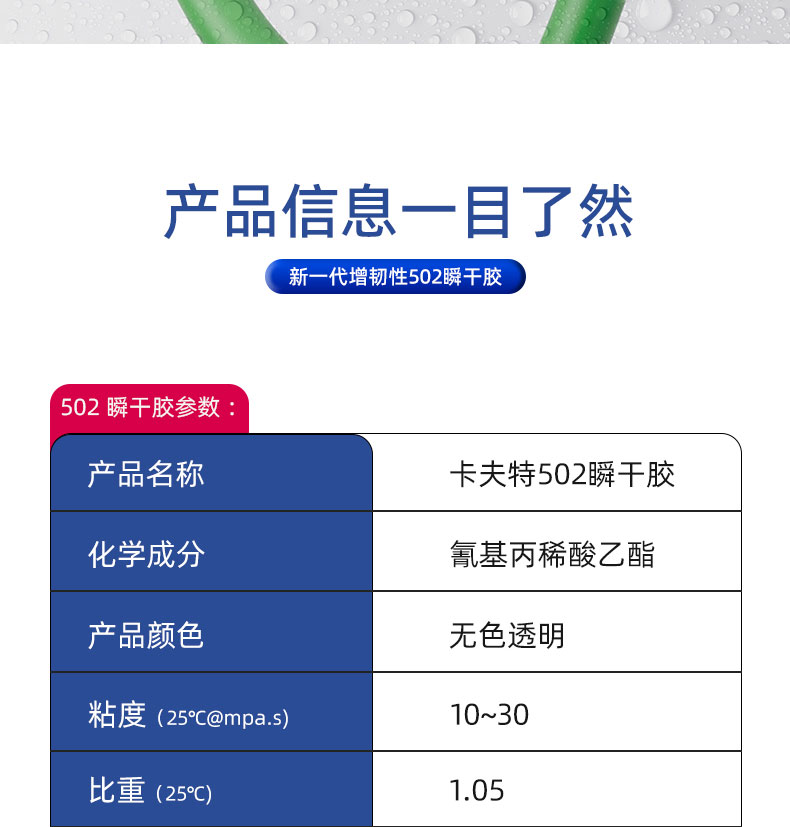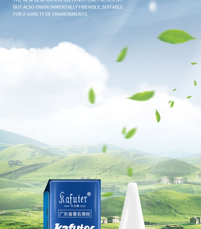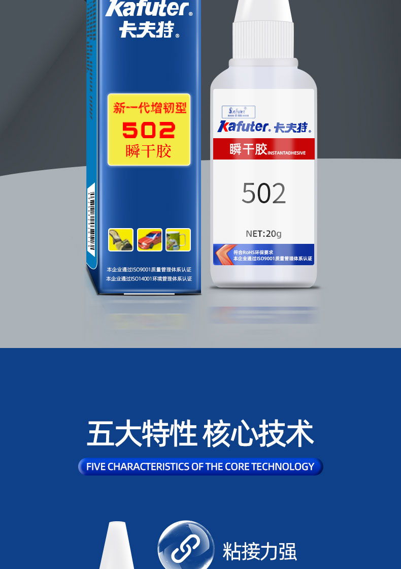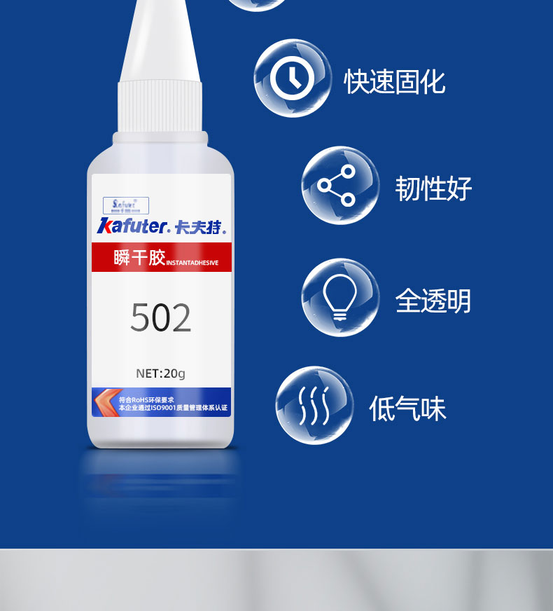 K-5O2快速瞬间强力胶,新一代单组分、增韧型、低粘度的多功能瞬间粘接剂。室温下快速固化、低气味、低白化、韧性好、粘接强度极高,使用非常方便。卡夫特Kafuter官方授权经销商-东莞德润密封材料有限公司
