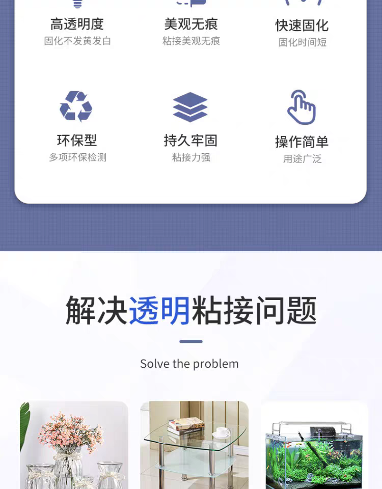 无影胶K-306无影胶(玻璃/玻璃、玻璃/金属粘接用UV胶)是一种单组份紫外光及可见光固化的改性丙烯酸酯胶粘剂。粘度小,适合大面积的粘接,用于玻璃与玻璃、玻璃与金属的粘接。