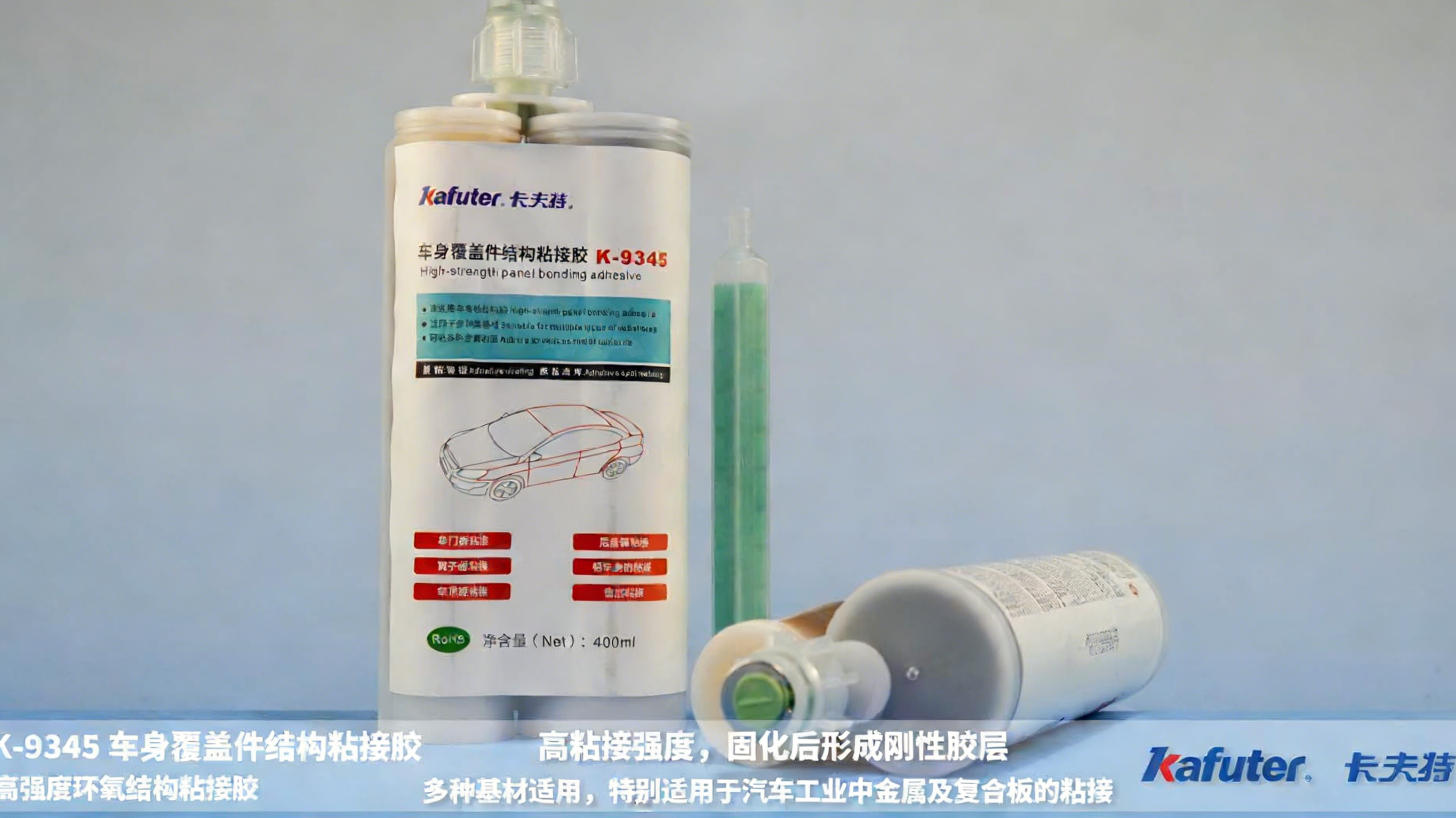 卡夫特K-9345环氧AB胶是一种膏状的双组份高强度环氧胶粘剂,完全固化后形成刚性粘接胶层,具有高粘接强度。它可用于多种基材的粘接,特别适用于汽车及工业制造领域的金属及复合板的粘接.卡夫特Kafuter官方授权经销商-东莞德润密封材料有限公司www.gzderun.com,销售服务热线:15817734885,李经理