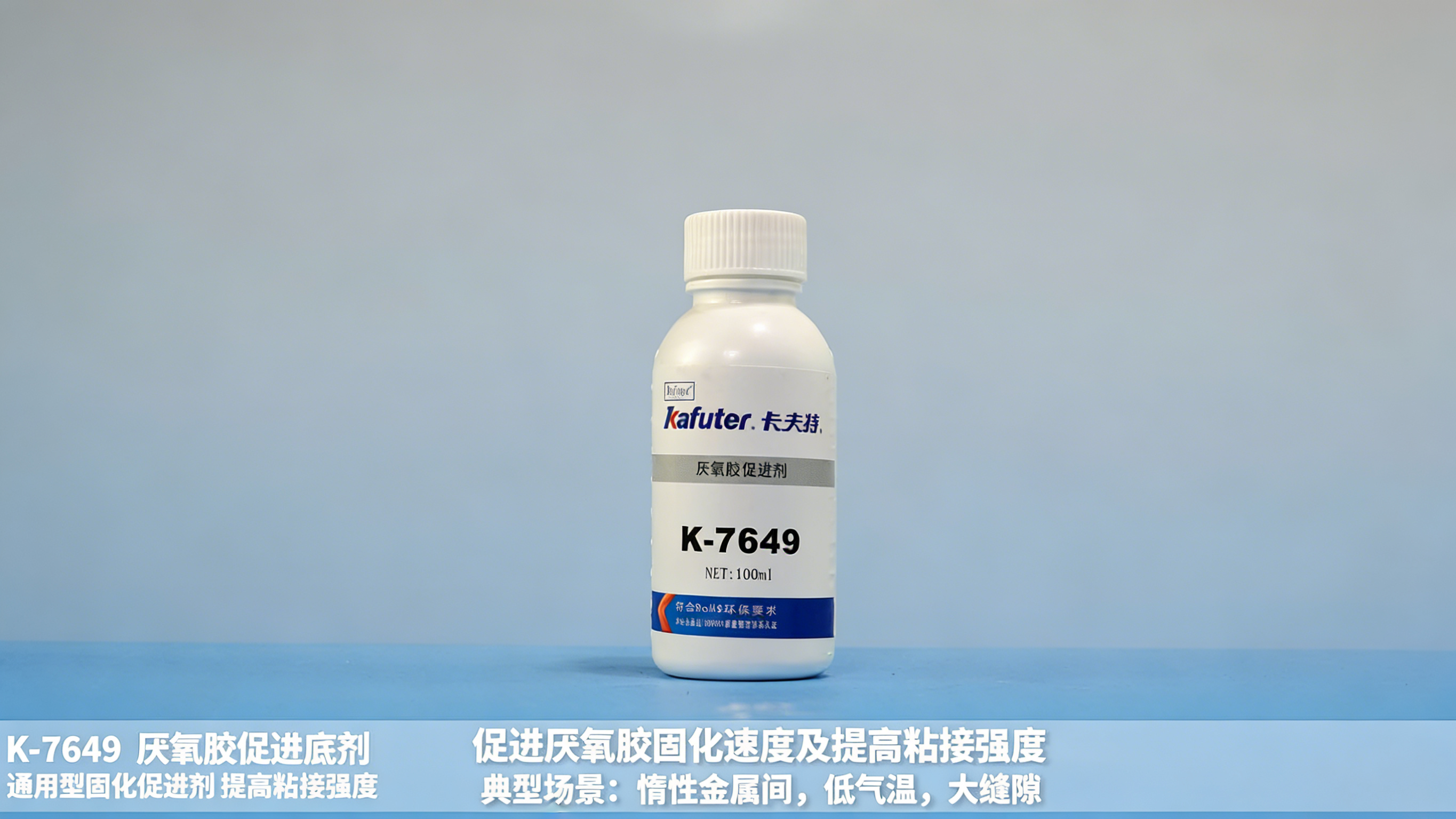 K-7649是一种单组份通用型固化促进剂。本品用来促进卡夫特厌氧胶的固化速度,提高粘接强度,在下列场合下需使用7649促进剂: