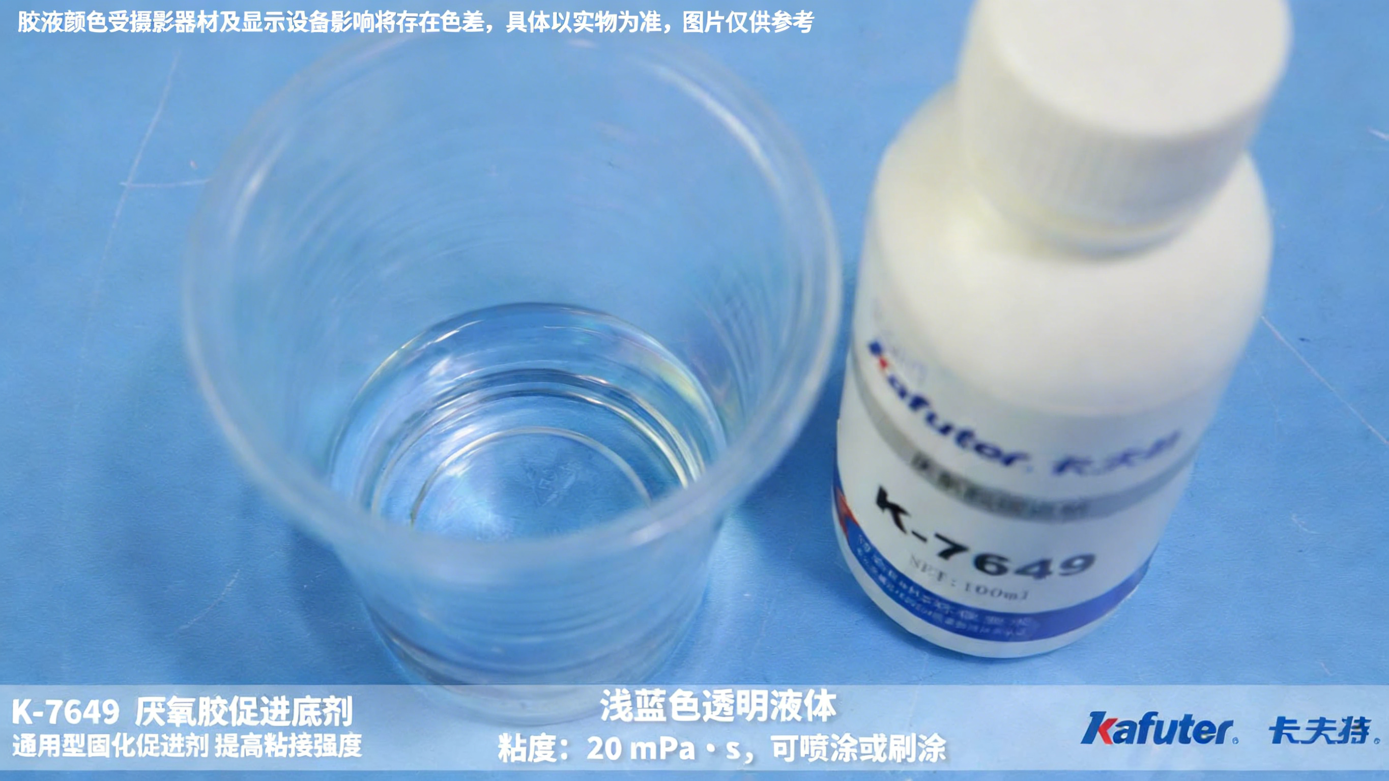 卡夫特K-7649是一种单组份通用型固化促进剂。本品用来促进卡夫特厌氧胶的固化速度,提高粘接强度。在下列场合下需使用7649促进剂:涂胶表面为惰性金属,气温低于10C,需加快固化速度,涂胶结合面间隙较大,本品适用于卡夫特各系列厌氧胶。卡夫特Kafuter官方授权经销商-东莞德润密封材料有限公司www.gzderun.com,销售服务热线:15817734885,李经理